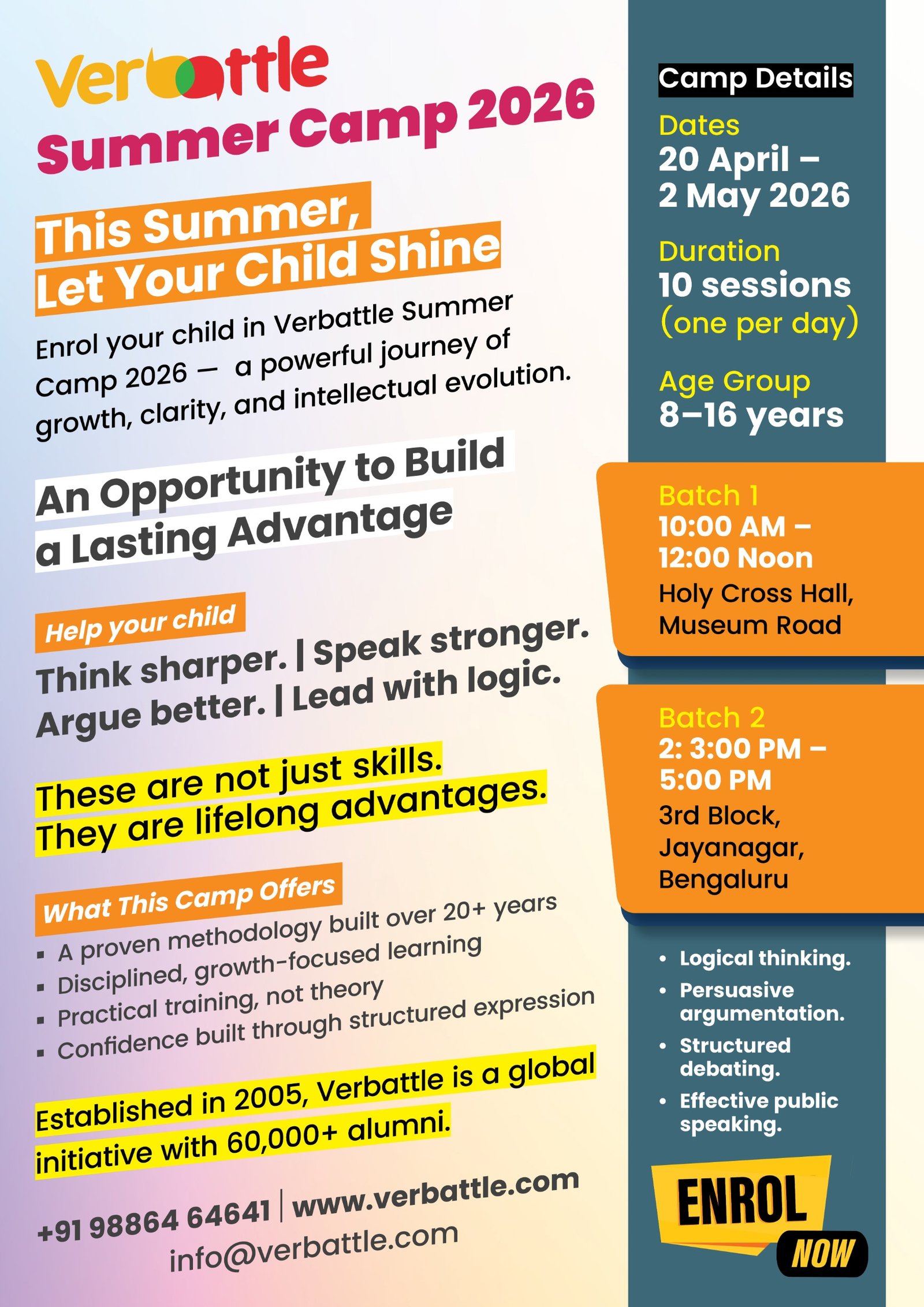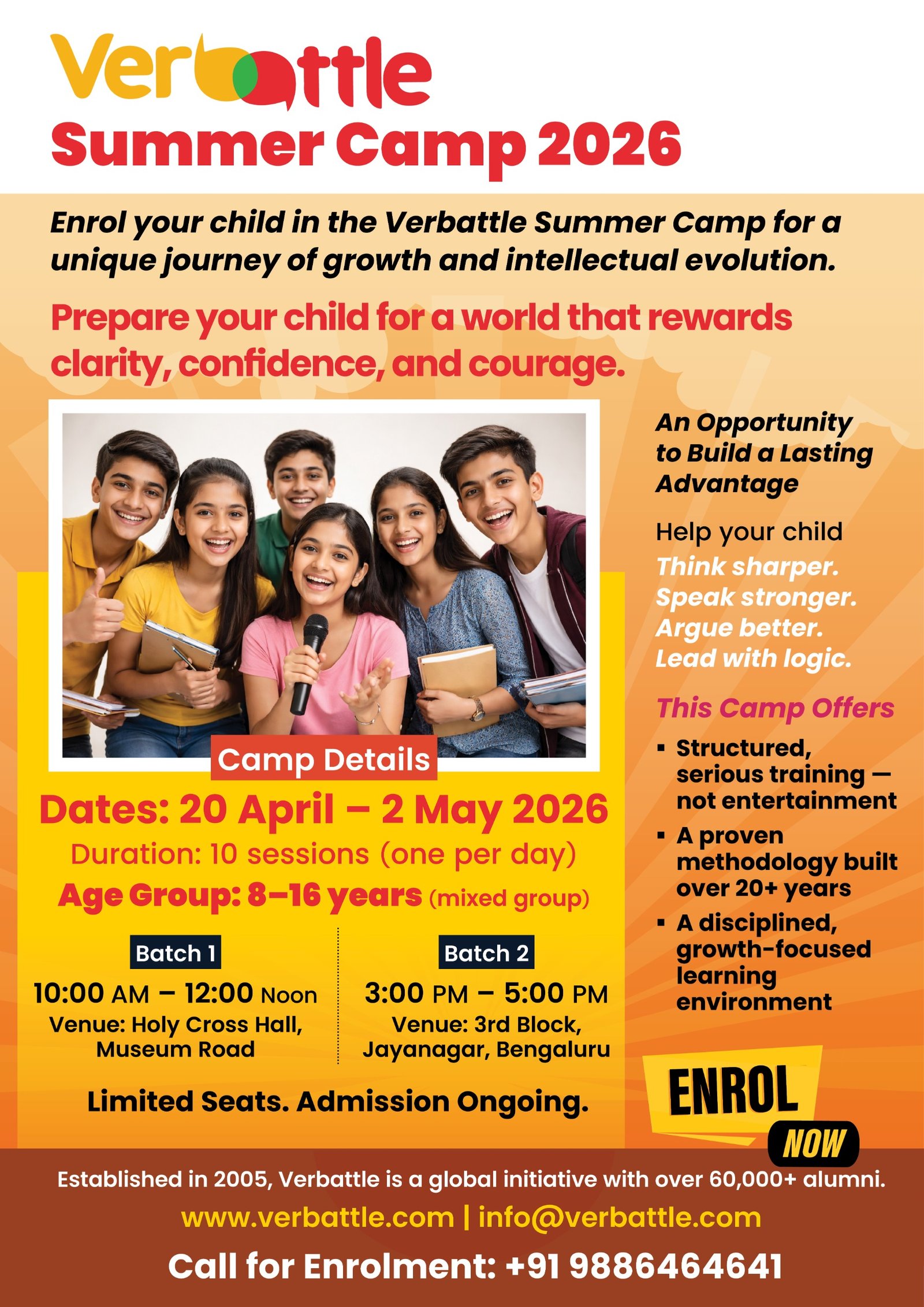 Verbattle Academy is conducting 'Verbattle CT Pro & Public Speaking Courses!' exclusively for school students of age 10-16 years. Hurry up, Register Now!