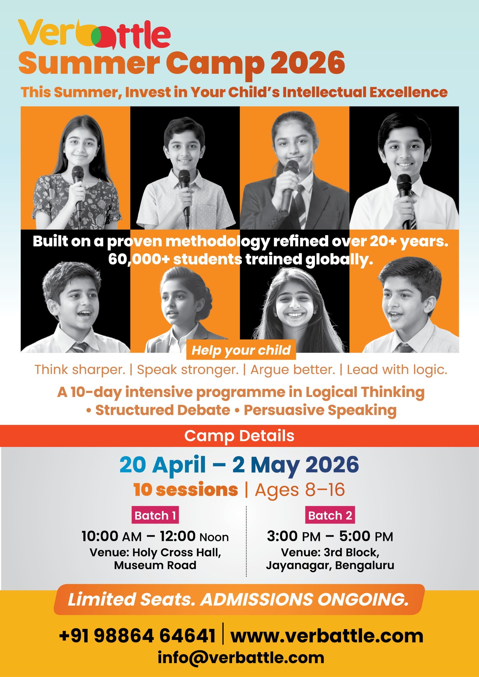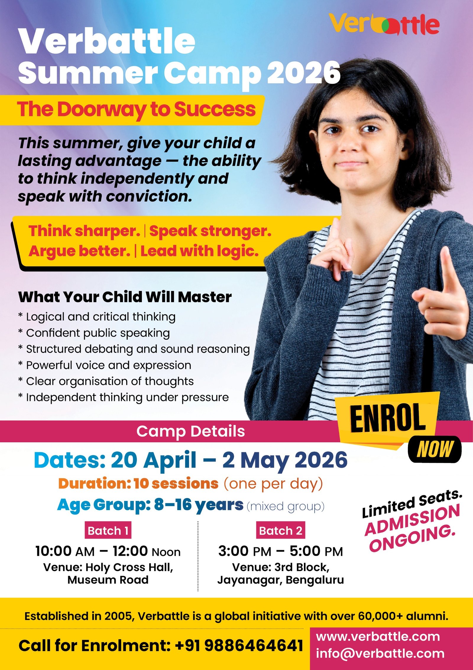 Verbattle Academy is conducting 'Verbattle CT Pro & Public Speaking Courses!' exclusively for school students of age 10-16 years. Hurry up, Register Now!